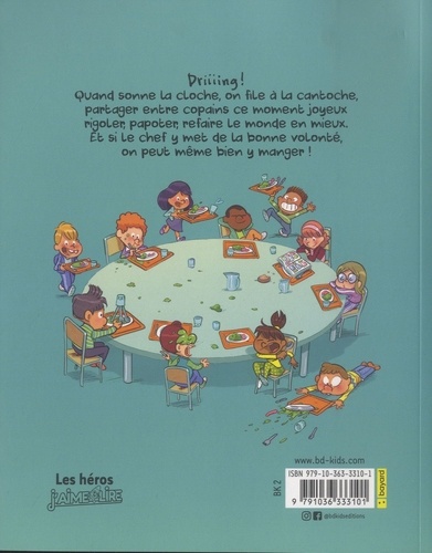 Driiiiiiiiing ! Quand sonne la cloche, on file à la cantoche, partager entre copains ce moment joyeux rigoler, papoter, refaire le monde en mieux, Et si le chef y met de la bonne volonté, On peut même bien y manger !