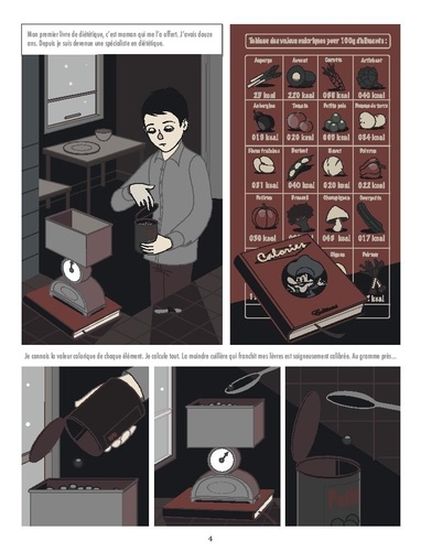 Deux adolescents rongés par un mal indicible. En passant d'un désintérêt bénin à un dégoût violent de leur corps, une jeune femme et un jeune homme sont tombés malades : ils ne s'alimentent pas suffisamment et mettent leur santé en danger. Sur le palier du psy, ces deux-là finissent par se croiser, et se comprennent, forcément. L'amitié va-t-elle leur permettre de sortir de cette spirale morbide ? Le suspens est intolérable, tant il est inconfortable de rentrer avec tant d'empathie dans la peau de ceux qui s'y sentent si mal. Mais le malaise est transcendé par la poésie de l'album, et la beauté du trait et des couleurs de Marie Caillou. Une auteur déjà célèbre au Japon, contributrice au film Peur(s) du Noir, et dont le dessin est un savoureux mélange de ses principales sources d'inspiration : l'école US (Chris Ware en tête), le manga d'auteur et la ligne claire franco-belge. Un album marquant.