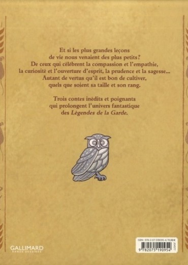 Trois contes inédits et poignants qui prolongent l'univers fantastique des Légendes de la Garde. Et si les plus grandes leçons de vie nous venaient des plus petits ? De ceux qui célèbrent la compassion et l'empathie, la curiosité et l'ouverture d'esprit, la prudence et la sagesse... Autant de vertus qu'il est bon de cultiver, quels que soient sa taille ou son rang.