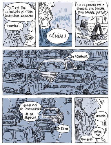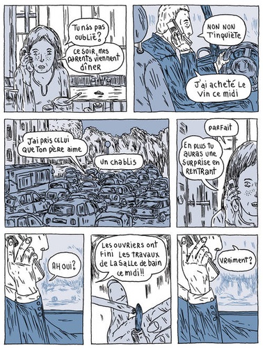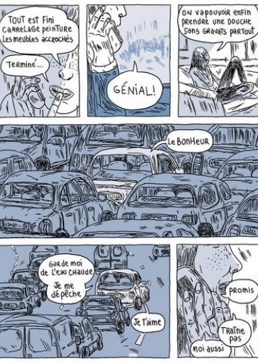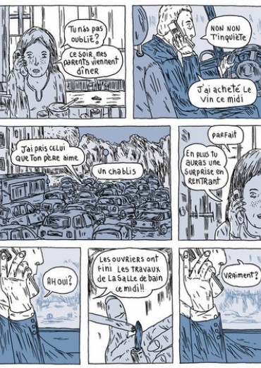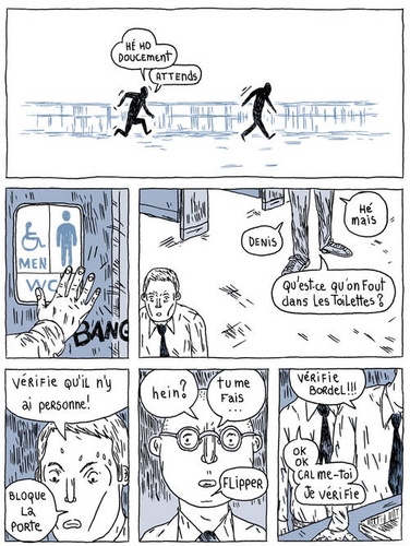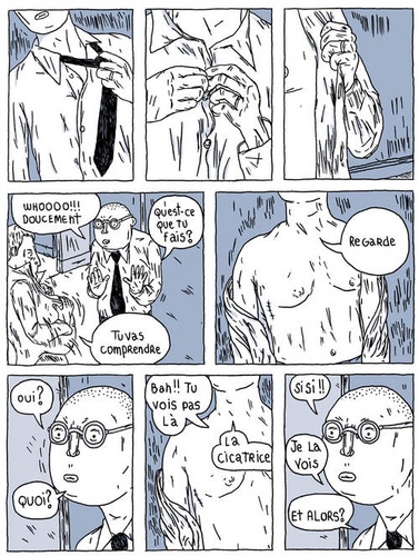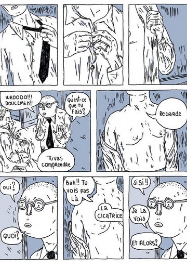 LA CICATRICE par Gilles Rochier Dans La cicatrice, Gilles Rochier se penche sur la vie d'un jeune couple de trentenaire, Denis et Sophie, partagé entre le travail, la rénovation d'un appartement et la vie familiale. Denis et Sophie vivent en région parisienne, travaillent dans de grandes entreprises : peu de temps pour communiquer, pas de nuage non plus. Un jour, Denis remarque une cicatrice sous son bras dont les causes lui échappent totalement. Accaparé par une vie professionnelle intense qu'il semble mener sereinement, c'est avec discrétion et obsession que Denis va tenter d'obtenir de la part de son entourage des indices et des bribes d'explications sur l'origine de cette cicatrice. C'est le début d'une introspection, d'un retour sur soi et son passé qui commence. Après le succès de son précédent ouvrage paru en 2011, TMLP (Prix révélation 2012 au Festival International de la bande dessinée d'Angoulême, Prix des Lycéens et apprentis Iles de France, Maison des écrivains 2012, Prix des Lycéens et apprentis Région PACA, Centre régional du livre, 2013), Gilles Rochier nous propose de nouveau une histoire dense et à fleur de peau, où le tragique point dans les interstices du quotidien. L'auteur Je découvre le monde du fanzine. Le fait de faire de la bande dessinée, sans avoir besoin des gros éditeurs me ravit, Envrac naît en septembre 1996. J'y raconte des histoires qui me sont arrivées dans mon quartier en faisant intervenir quelquefois des amis sans tomber dans les clichés classiques de la banlieue. J'essaye de parler juste, mais déjà je sais pertinemment que les histoires que je raconte sont très très loin de ce qui se passe réellement dans les banlieues de nos jours. J'essaye de toujours rester en action. La journée, j'écris, je m'occupe de mes enfants et j'attends que la nuit tombe pour dessiner... je peux pas trop avant. Je tente de monter des projets de réinsertion par la bande dessinée, la narration graphique moderne. Grâce à mon éditeur et à cette nouvelle visibilité, je vais me confronter au public "empêché" (prison, HP, hôpital), à celui des écoles etc.