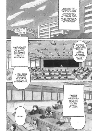 Une série de science-fiction poétique et surprenante ! La Terre étant devenue une zone protégée, les hommes vivent désormais dans une cité formant un anneau autour de la planète. À peine sorti de l'école, Mitsu devient laveur de carreau tout comme l'était son père, disparu mystérieusement. En nettoyant leurs vitres, c'est un peu comme si Mitsu pénétrait dans le petit monde de chaque habitant...