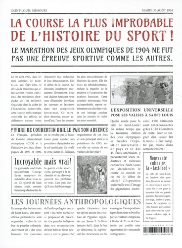 1904. Les Etats-Unis accueillent les Jeux Olympiques pour la première fois et sont bien décidés à prouver leur supériorité. Le marathon aura lieu à Saint-Louis, dans le Missouri, et il va marquer les esprits... en tant que course la plus rocambolesque de l'histoire de ce sport ! Trente-deux coureurs sur la ligne de départ, mais seulement quatorze à l'arrivée. Entre dopage expérimental, triche, sentiers balisés aléatoirement, tout peut ? et va - arriver. Faites vos jeux, rien ne va plus... mais alors vraiment plus du tout !