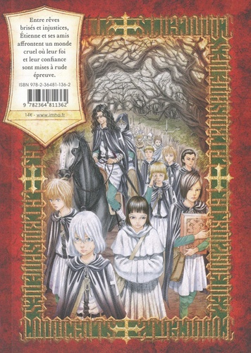 "On était toujours souriants, au village, pas vrai ? " Alors que tout semblait se dérouler au mieux pour les jeunes croisés, la cruauté du monde médiéval les rattrape soudain et met à rude épreuve leurs rêves et espoirs. Enfants poussés à grandir trop vite au milieu d'adultes qui les maltraitent, la noirceur s'installe dans le coeur d'Etienne et ses compagnons quand se suivent trahisons et injustices.