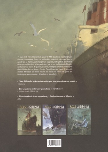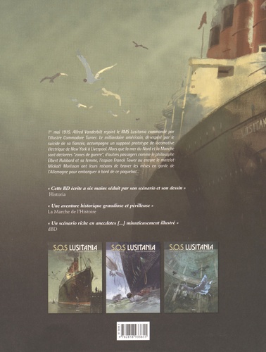 ler mai 1915. Alfred Vanderbilt rejoint le RMS Lusitania commun é par l'illustre Commodore Turner. Le milliardaire américain, désespéré par le suicide de sa fiancée, accompagne un supposé prototype de locomotive électrique de New York à Liverpool. Alors que la mer du Nord et la Manche sont déclarées «zones de guerre» ; d'autres passagers comme le philosophe Elbert Hubbard et sa femme, l'espion Franck Tower ou encore le matelot Mickaël Morisson ont leurs raisons de braver les mises en garde de l'Allemagne pour embarquer à bord de ce paquebot...