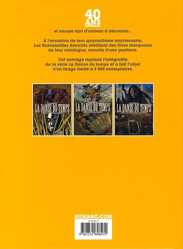 40 ans, et encore tant d'univers à découvrir. A l'occasion de leur quarantième anniversaire, Les Humanoïdes Associés rééditent des titres marquants de leur catalogue, assortis d'une postface. Cet ouvrage reprend l'intégralité de la série La Danse du temps et a fait l'objet d'un tirage limité à 2000 exemplaires.