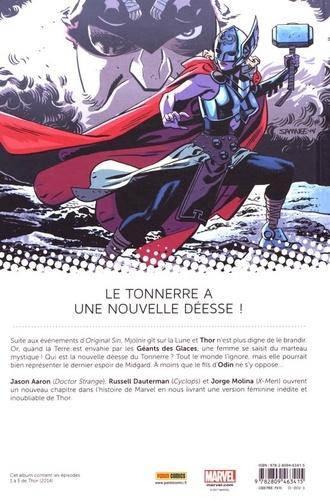 Le fils d'Odin est devenu indigne, il lui est désormais impossible de soulever Mjolnir. Retrouvé sur la lune, le marteau enchanté est maintenant manié par une femme. Cependant l'identité de la nouvelle déesse du Tonnerre reste un mystère. Qui est Thor ?