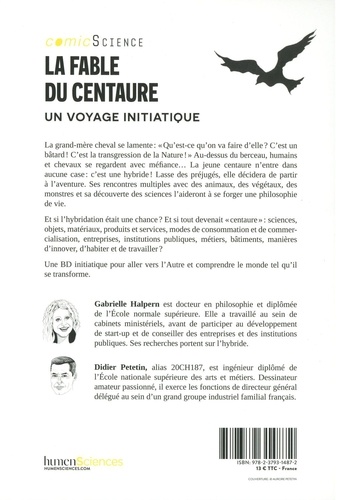 La grand-mère cheval se lamente : "Qu'est-ce qu'on va faire d'elle ? C'est un bâtard ! C'est la transgression de la Nature ! ". Au-dessus du berceau, humains et chevaux se regardent avec méfiance... La jeune centaure n'entre dans aucune case : c'est une hybride ! Lasse des préjugés, elle décidera de partir à l'aventure. Ses rencontres multiples avec des animaux, des végétaux, des monstres et sa découverte des sciences l'aideront à se forger une philosophie de vie. Et si l'hybridation était une chance ? Et si tout devenait "centaure" : sciences, objets, matériaux, produits et services, modes de consommation et de commercialisation, entreprises, institutions publiques, métiers, bâtiments, manières d'innover, d'habiter et de travailler ?