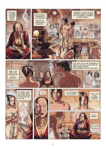 A quoi sert un harem ? Au plaisir d'un souverain bien sûr. Mais bien naïf celui qui le limite à cet unique but. Car il est dit : " Satisfait un homme et tu obtiendras de lui tous les trésors de la terre. " Y compris ceux de la guerre. Voilà pourquoi le harem du sultan Murati, surnommé le sultan noir, est pour lui une arme plus puissante que bien des armées dont disposent ces Anglais, ces Allemands qui se disputent ses faveurs et son alliance. Fleur entre les fleurs, arme entre les armes, Jade, sa nouvelle favorite, est chargée par le maître d'Istambul de mener à bien l'assaut d'un diplomate anglais à travers son talon d'Achille. Sa femme... Car Jade n'a peur de rien et semble cacher un coeur de pierre sous sa douce poitrine. L'homme de confiance du sultan ne l'a-t-il pas vu ordonner le meurtre de sang-froid de la petite fille de Djoua, favorite déchue de Murati ? Que se passa-t-il réellement en cette année 1912 ? On dit que Jade, battue par ses propres armes, trahit le sultan et disparut avec celui qui devait être sa proie. 50 ans plus tard, sa petite fille, Kim Nelson, tente de retrouver sa trace dans un Istambul où les harems ont disparu. Mais pas les bordels. Elle le découvrira à ses dépens. D'autant que la légende murmure que Jade, seule, savait où fut caché le trésor du sultan que nul jamais ne retrouva. Et l'odeur de ce tas d'or excite au plus haut point quelques grands prédateurs locaux... Dufaux (scénariste des très envoûtants Rapaces) mêle avec bonheur la rigueur victorienne à la chaude sensualité des harems ottomans. Ana Miralles donne à ses créatures une élégance, une finesse, une légèreté qui entraîne le lecteur dans un monde cruel mais oh combien tentant.