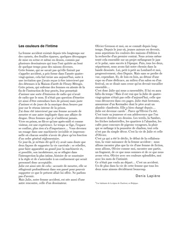 Née à l'horizon des hauts-fourneaux de Charleroi, la ville natale du dessinateur Grenson, Julie est une héroïne écorchée par la vie, accidentée par une famille négligente et une place difficile à trouver dans un monde qui ne lui accorde pas davantage d'attention. Avide du regard des autres, de leur désir, de leur reconnaissance, cette adolescente victime de l'autorité des adultes grandira vite, trop vite peut-être, avec pour uniques guides la maladresse de la jeunesse et sa force de caractère. Jusqu'à se retrouver sur le banc des accusés pour défendre sa liberté. C'est avec beaucoup de sensibilité et un dessin raffiné, en couleurs directes, que Denis Lapière et Olivier Grenson donnent corps et âme à ce récit de vie bouleversant. La quête de l'amour vrai, l'émancipation féminine, la justesse et la justice sont autant de thèmes qui parcourent cette histoire, ici éditée dans sa première intégrale chez "Aire Libre". On ressortira de cette lecture les larmes prêtes à sourdre, le coeur serré et compatissant, peut-être un peu malmené comme le fut Julie, mais sans nul doute sincèrement touché par son combat admirable. D'une réelle beauté.