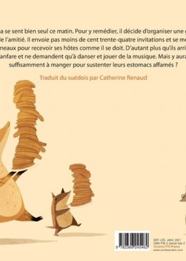 Momba se sent bien seul ce matin. Pour y remédier, il décide d'organiser une grande fête de l'amitié. Il envoie pas moins de cent trente-quatre invitations et se met aux fourneaux pour recevoir ses hôtes comme il se doit. D'autant plus qu'ils arrivent en fanfare et ne demandent qu'à danser et jouer de la musique. Mais y aura-t-il suffisamment à manger pour sustenter leurs estomacs affamés ?