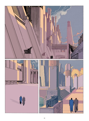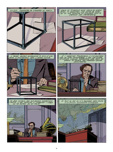 Prix du Meilleur Album à Angoulême en 1985, ce deuxième volume de la saga au long cours de Schuiten et Peeters paraît pour la première fois en couleurs. L'urbatecte Eugen Robick est insatisfait. La Commission des Hautes Instances, qui gouverne Urbicande, refuse l'aménagement d'un pont qui, selon Robick, rétablirait un équilibre urbain menacé. C'est dans ce contexte qu'un étrange objet fait son apparition sur le bureau de Robick : une structure cubique évidée d'origine inconnue, faite d'un métal indestructible, qui commence à lentement croître... Publiée dans le journal (A suivre) en 1983, La Fièvre d'Urbicande était au départ conçue pour paraître en couleur. Plus de 35 ans après sa première publication, l'un des épisodes majeurs des Cités Obscures est donc enfin colorisé. C'est le graphiste et illustrateur belge Jack Durieux qui a oeuvré pour souligner la majesté et la puissance de cette bande dessinée intemporelle.