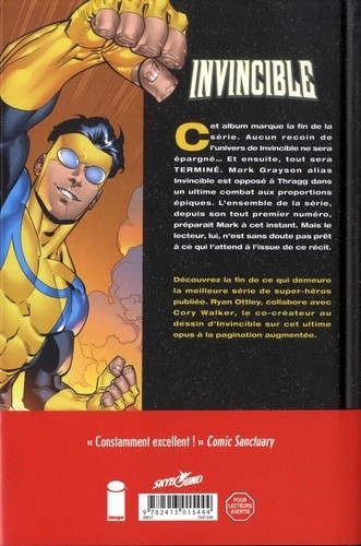 Cet album marque la fin de la série. Aucun recoin de l'univers de Invincible ne sera épargné... Et ensuite, tout sera TERMINE. Mark Grayson alias Invincible est opposé à Thragg dans un ultime combat aux proportions épiques. L'ensemble de la série, depuis son tout premier numéro, préparait Mark à cet instant. Mais le lecteur, lui, n'est sans doute pas prêt à ce qui l'attend à l'issue de ce récit.