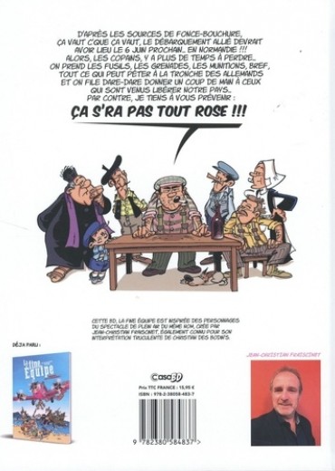 Cette BD, la fine équipe est inspirée des personnages du spectacle de plein air du même nom, crée par Jean-Christophe Fraiscinet, également connu pour son interprétation truculente de Christian des Bodin's.
