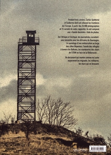 Un document qui montre comme nul autre auparavant les migrants, les militaires, les murs qui se dressent. Pendant trois années, Carlos Spottorno et Guillermo Abril ont sillonné les frontières de l'Europe. A partir des 25 000 photographies et 15 carnets de notes rapportés, ils ont composé une "bande dessinée" faite de photos. De l'Afrique à l'Arctique, les journalistes racontent : une rencontre avec les Africains du Gourougou, le sauvetage d'une embarcation au large des côtes lybiennes, l'exode des réfugiés à travers les Balkans, les manoeuvres des chars de l'OTAN en face de la Biélorussie...