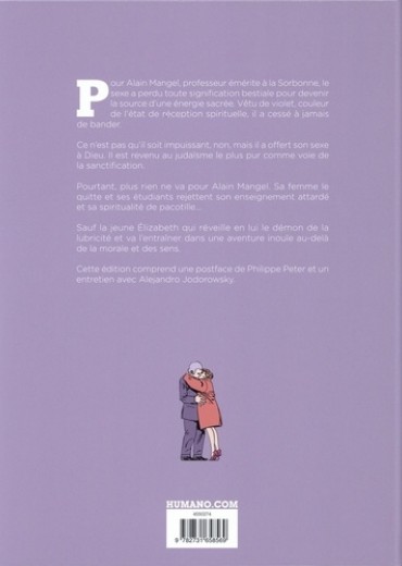 Pour Alain Mangel, professeur émérite à la Sorbonne, le sexe a perdu toute signification bestiale pour devenir la source d'une énergie sacrée. Vêtu de violet, couleur de l'état de réception spirituelle, il a cessé à jamais de bander. Ce n'est pas qu'il soit impuissant, non, mais il a offert son sexe à Dieu. Il est revenu au judaïsme le plus pur comme voie de la sanctification. Pourtant, plus rien ne va pour Alain Mangel. Sa femme le quitte et ses étudiants rejettent son enseignement attardé et sa spiritualité de pacotille... Sauf la jeune Elizabeth qui réveille en lui le démon de la lubricité et va l'entraîner dans une aventure inouïe au-delà de la morale et des sens.
