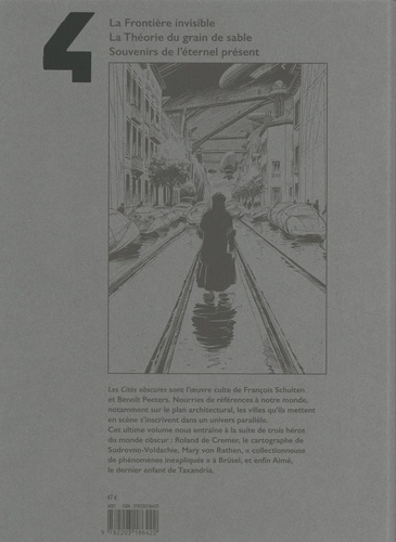Née en 1982 de la collaboration de François Schuiten et Benoît Peeters, la série Les Cités obscures est aujourd'hui une oeuvre culte, avec 1, 2 million d'exemplaires vendus en français et des traductions en une quinzaine de langues. S'ils se nourrissent de références à notre monde, notamment sur le plan architectural, les albums des Cités obscures s'inscrivent dans un univers parallèle au nôtre, dont la singularité s'est affirmée davantage à chaque nouveau tome. Trente-sept ans après les débuts de la série dans le journal (A suivre), cet ultime volume de la saga reprend les histoires les plus récentes : La Frontière invisible (2004), La Théorie du grain de sable (2008), Souvenirs de l'éternel présent (2009), ainsi que de nombreux compléments sur les personnages et le monde des Cités obscures...