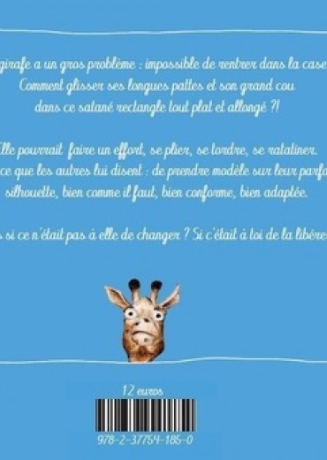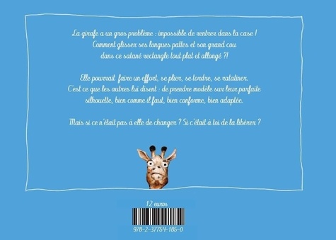 Parler de la différence et de ladaptation. La girafe a un gros problèmeimpossible de rentrer dans sa caseElle, longue, grande, droite et fièrement dressée, ne trouve pas sa place dans les pages de ce livre tout allongé. Elle va se ratatiner, se compresser, sépuiser à se mouler dans ce satané morceau de papierCar cest ce que les autres lui disent de faire, de prendre modèle sur leur parfaite silhouette, bien comme il faut, bien adaptée. Mais si ce nétait pas à elle de changerSi cétait à toi, lecteur, de la libérerUn jeu de format sur le livre et ses personnages, drôle et anticonformiste.