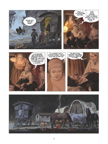 Une oeuvre inoubliable. Une vie inimaginable. Blessé, fiévreux et en exil après son affrontement contre Ranuccio, le Caravage quitte Rome pour trouver refuge auprès d'une troupe de saltimbanques. Le peintre profite de sa convalescence pour se lier avec la belle et farouche Ipazia, qui lui servira d'inspiration future. Alors que leur caravane fait halte à Naples, le Caravage se rend compte qu'il est à la fois célèbre et recherché à travers toute l'Italie. Entre les proches de Ranuccio qui cherchent vengeance et les commanditaires de ses tableaux laissés inachevés, le peintre ne s'est pas fait que des admirateurs et partage sa vie entre la palette et l'épée. Son seul espoir d'obtenir, par la grâce papale, un sésame pour retourner à Rome est d'entrer dans le prestigieux ordre des Chevaliers de Malte. C'est un nouveau voyage qui s'annonce... Susceptible, impétueux, hédoniste et bagarreur, le Caravage n'est pas seulement le maître du clair-obscur et l'un des plus grands peintres de l'histoire de l'Art, c'est aussi l'auteur d'une vie d'aventure au moins aussi incroyable que son oeuvre. Avec ce second volume, Milo Manara parachève son chef-d'oeuvre : rendre hommage au plus grand artiste de son temps dans une ode à l'art et à la beauté.