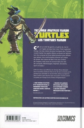 C'est un chef de guerre, un génie du mal et un fragile cerveau tout rose. C'est le général Krang. L'un des vilains les plus iconiques des Tortues revient hanter les quatre élèves surdoués de Splinter, fort d'un arsenal et d'une détermination plus affûtés que jamais. Une confrontation directe qui risque de laisser des traces de New York aux confins de l'espace, mais aussi et surtout dans les vies de Leonardo, Michelangelo, Raphaël, Donatello, April et Casey ! Enfin de retour aux affaires, les Tortues Ninja débutent leurs nouvelles aventures face à l'un de leurs ennemis jurés, pendant que Shredder et ses terribles alliés se préparent dans l'ombre, bien heureux que nos quatre Tortues soient occupées par Krang et ses armées intergalactiques.
