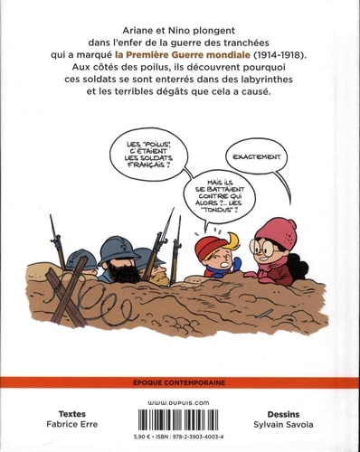 Ariane et Nino plongent dans l'enfer de la guerre des tranchées qui a marqué la Première Guerre mondiale (1914-1918). Aux côtés des poilus, ils découvrent pourquoi ces soldats se sont enterrés dans des labyrinthes et les terribles dégâts que cela a causé.