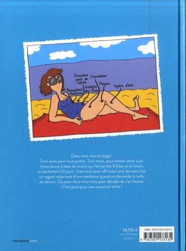 Dans trois mois la plage ! Trois mois pour tout perdre. Trois mois, pour tenter cette cure miraculeuse à base de raisins qui fait perdre 8 kilos et la raison, en seulement 10 jours. Trois mois pour affronter une dernière fois ce regard méprisant d'une vendeuse quand on demande la taille du dessus. Ou peut-être trois mois pour décider de s'en foutre. C'est parti pour une saison en enfer !