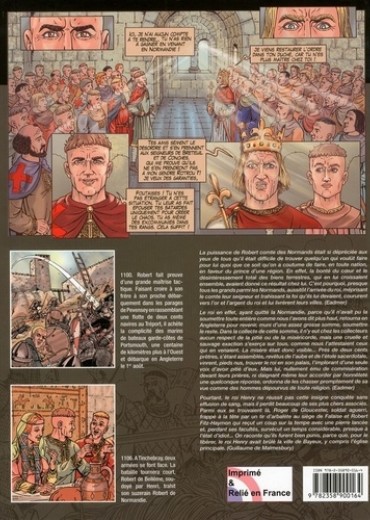 La puissance de Robert comte des Normands était si dépréciée aux yeux de tous qu'il était difficile de trouver quelqu'un qui voulût faire pour lui quoi que ce soit qu'on a coutume de faire, en toute nation, en faveur du prince d'une région. En effet, la bonté du coeur et le désintéressement total des biens terrestres, qui en lui croissaient ensemble, avaient donné ce résultat chez lui. C'est pourquoi, presque tous les grands parmi les Normands, aussitôt l'arrivée du roi, méprisant le comte leur seigneur et trahissant la foi qu'ils lui devaient, coururent vers l'or et l'argent du roi et lui livrèrent leurs villes (Eadmer). Le roi en effet, ayant quitté la Normandie, parce qu'il n'avait pu la soumettre toute entière comme nous l'avons dit plus haut, retourna en Angleterre pour revenir, muni d'une assez grosse somme, soumettre le reste. Dans la collecte de cette somme, il n'y eut chez les collecteurs aucun respect de la pitié ou de la miséricorde, mais une cruelle et sauvage exaction s'exerça sur tous, comme nous l'attestaient ceux qui en venaient. La misère était donc visible... Près de deux cents prêtres, s'étant assemblés, revêtus de l'aube et de l'étole sacerdotale, vinrent, pieds nus, trouver le roi en son palais, l'implorant d'une seule voix d'avoir pitié d'eux. Mais lui, nullement ému de commisération devant leurs prières, ni daignant même leur accorder par honnêteté une quelconque réponse, ordonna de les chasser promptement de sa vue comme des hommes dépourvus de toute religion (Eadmer). Pourtant, le roi Henry ne réussit pas cette insigne conquête sans effusion de sang, mais il perdit beaucoup de ses plus chers associés. Parmi eux se trouvaient là, Roger de Gloucester, soldat aguerri, frappé à la tête par un tir d'arbalète au siège de Falaise et Robert Fitz-Haymon qui reçut un coup sur la tempe avec une pierre lancée et, perdant ses facultés, survécut un temps considérable, presque à l'état d'idiot... On raconte qu'ils furent bien punis, parce que, pour le libérer, le roi Henry avait brûlé la ville de Bayeux, y compris l'église principale (Guillaume de Malmesbury).