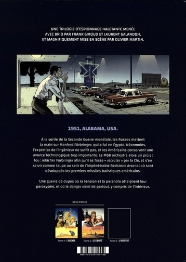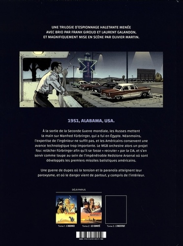 1951, ALABAMA, USA. A la sortie de la Seconde Guerre mondiale, les Russes mettent la main sur Manfred Fürbringer, qui a fui en Egypte. Néanmoins, l'expertise de l'ingénieur ne suffit pas, et les Américains conservent une avance technologique trop importante. Le MGB orchestre alors un projet fou : relâcher Fürbringer afin qu'il se fasse "recruter" par la CIA, et s'en servir comme taupe au sein de l'impénétrable Redstone Arsenal où sont développés les premiers missiles balistiques américains. Une guerre de dupes où la tension et la paranoïa atteignent leur paroxysme, et où le danger vient de partout, y compris de l'intérieur.