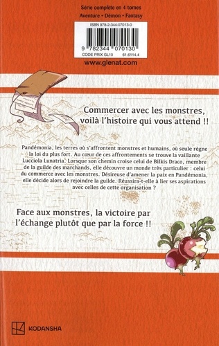 Commercer avec les monstres, voilà l'histoire qui vous attend !! Pandémonia, les terres où s'affrontent monstres et humains, où seule règne la loi du plus fort. Au coeur de ces affrontements se trouve la vaillante Lucciola Lunatria. Lorsque son chemin croise celui de Bilkis Draco, membre de la guilde des marchands, elle découvre un monde très particulier : celui du commerce avec les monstres. Désireuse d'amener la paix en Pandémonia, elle décide alors de rejoindre la guilde. Réussira-t-elle à lier ses aspirations avec celles de cette organisation ? Face aux monstres, la victoire par l'échange plutôt que par la force !!