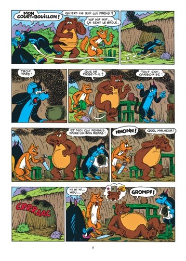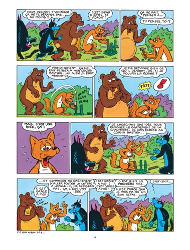 Renard a écrit une lettre à l'ours Bastien et il a demandé à Sylvain d'aller la poster en ville. Il compte profiter de l'absence de ce dernier pour s'introduire dans la chaumière avec la complicité d'autres compères et y dérober les provisions... Hélas, ce plan échoue ! Plutôt que de s'obstiner à entrer dans la chaumière, Loup préconise de capturer Sylvain et de s'emparer des victuailles qu'il rapporte de la ville. Mais le paquet de Sylvain contient une surprise à laquelle on ne s'attendait pas. Cette surprise est un nouvel animal qui, aussitôt libéré, occasionne bien des ennuis aux auteurs du complot.