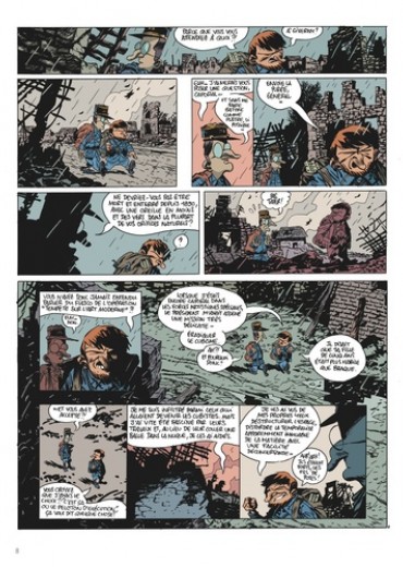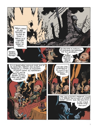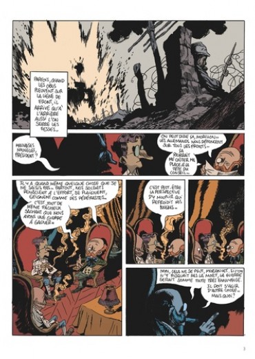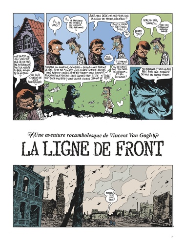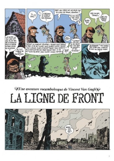 Après Sigmund Freud, puis Robin des Bois, Manu Larcenet s'attaque à la biographie non officielle de Vincent Van Gogh et à son passage méconnu dans l'armée française lors de la guerre de 14-18. Sublime bouquin constamment ballotté entre le rire et l'horreur, la ligne de front est une hallucinante plongée dans la barbarie guerrière où l'on manque cruellement de tournesol et d'harmonie chromatique. Pour la troisième fois, Larcenet revisite donc la bio d'un personnage célèbre à sa sauce toute personnelle. Ici, on découvre un Vincent Van Gogh usé après une carrière militaire difficile. Sa dernière mission a d'ailleurs été un échec et sa hiérarchie a du inventer cette histoire stupide d'oreille coupée pour le faire disparaître. A présent, il est envoyé sur le front pendant la grande boucherie de 14-18 afin de ramener des peintures du front. Car l'Etat Major est perplexe et ne comprend pas pourquoi certains soldats désertent, refusant la gloire de mourir pour la patrie : Qu'est ce qui peut les effrayer à ce point ? La guerre tout simplement, et Larcenet rejoint un Tardi pour décrire l'horreur des tranchées. Son trait est au sommet, son propos, parfois hilarant, bascule aussi dans le noir le plus sanglant, dans un témoignage magnifique pour donner un livre qui donne à réfléchir, même une fois refermé.