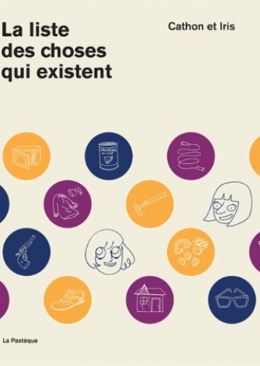 La poubelle, la boîte de conserve, l'autocollant, la chaussure, la corde à danser, le fusil, le maillot de bain, la nouille, le pyjama, les lunettes, le micro-ondes, le miroir, le bain, le rasoir, le cabanon, le casse-tête, le couteau, le lit. Cathon et Iris aiment les objets. Dans La liste des choses qui existent, vous apprendrez entre autres d'où viennent les lunettes et comment ont été inventées la chaussure et la boîte de conserve !