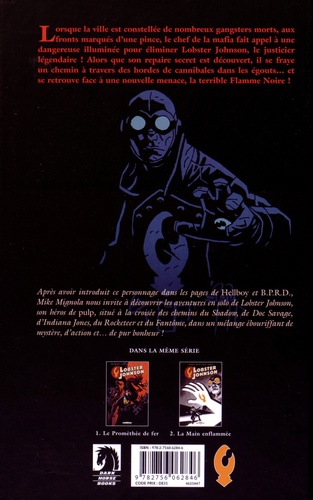 Lorsque la ville est constellée de nombreux gangsters morts, aux fronts marqués d'une pince, le chef de la mafia fait appel à une dangereuse illuminée pour éliminer Lobster Johnson, le justicier légendaire ! Alors que son repaire secret est découvert, il se fraye un chemin à travers des hordes de cannibales dans les égouts... et se retrouve face à une nouvelle menace, la terrible Flamme Noire !