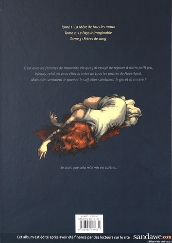 C'est avec les femmes de mauvaise vie que j'ai essayé de rejouer à notre petit jeu, Wendy, celui ou vous étiez la mère de tous les pirates de Neverland. Mais elles sentaient le pavé et le suif, elles suintaient le gin et la misère !