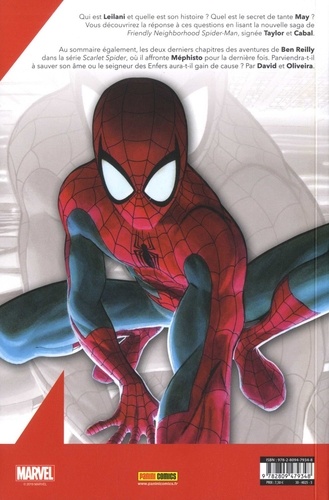Qui est Teilani et quelle est son histoire ? Quel est le secret de tante May ? Vous découvrirez la réponse à ces questions en lisant la nouvelle saga de Friendly Neighborhood Spider-Man, signée Taylor et Cabal. Au sommaire également, les deux derniers chapitres des aventures de Ben Reilly dans la série Scarlet-Spider, où il affronte Méphisto pour la dernière fois. Parviendra-t-il à sauver son âme ou le seigneur des Enfers aura-t-il gain de cause ? Par David et Oliveira.