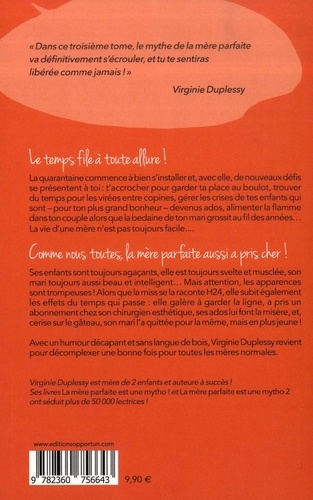 Le temps file à toute allure ! La quarantaine commence à bien s'installer et, avec elle, de nouveaux défis se présentent à toi : t'accrocher pour garder ta place au boulot, trouver du temps pour les virées entre copines, gérer les crises de tes enfants qui sont—pour ton plus grand bonheur—devenus ados, alimenter la flamme dans ton couple alors que la bedaine de ton mari grossit au fil des années... La vie d'une mère n'est pas toujours facile... Comme nous toutes, la mère parfaite aussi a pris cher ! Ses enfants sont toujours agaçant elle est toujours svelte et musclée, son mari toujours aussi beau et intelligent... Mais attention, les apparences sont trompeuses ! Alors que la miss se la raconte H24, elle subit également les effets du temps qui passe : elle galère à garder la ligne, a pris un abonnement chez son chirurgien esthétique, ses ados lui font la misère, et, cerise sur le gâteau, son mari l'a quittée pour la même, mais en plus jeune !