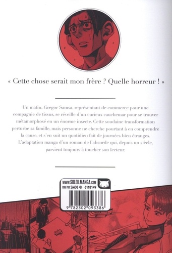 Un matin, Gregor Samsa, représentant de commerce pour une compagnie de tissus, se réveille d'un curieux cauchemar pour se trouver métamorphosé en un énorme insecte. Cette soudaine transformation perturbe sa famille, mais personne ne cherche pourtant à en comprendre la cause, et s'en suit un quotidien fait de journées bien étranges. L'adaptation manga d'un roman de l'absurde qui, depuis un siècle, parvient toujours à toucher son lecteur.