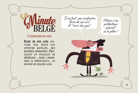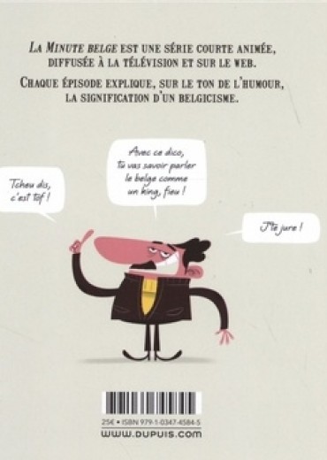 La minute belge est une série courte animée, diffusée à la télévision et sur le Web. Chaque épisode explique, sur le ton de l'humour, la signification d'un belgicisme. Avec ce dico, tu vas savoir parler le belge comme un king, fieu ! J'te jure ! Tcheu dis, c'est tof !
