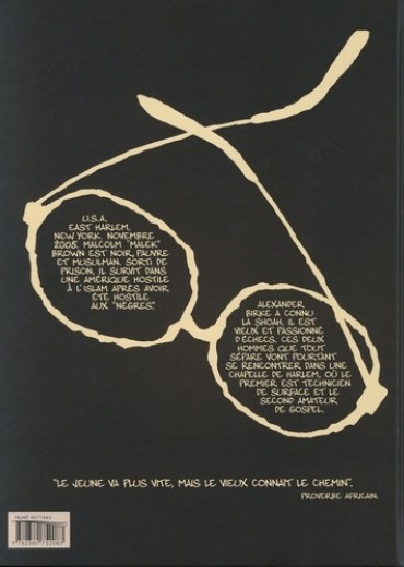 U.S.A., East Harlem, New York. Novembre 2005. Malcom "Malek" Brown est noir, pauvre et musulman. Sorti de prison, il survit dans une Amérique hostile aux musulmans après avoir été hostile aux "nègres" . Alexander Birke a connu la Shoah, il est vieux et passionné d'échecs. Ces deux hommes que tout sépare vont pourtant se rencontrer dans une chapelle de Harlem, où le premier est technicien de surface et le second amateur de Gospel. "Le jeune va plus vite, mais le vieux connaît le chemin" Proverbe Africain
