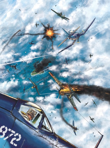 En 1943, les Japonais n'ont vraiment pas de chance. Premièrement, ils voient arriver un avion extraordinaire : le fameux Corsair. Leurs Zéro ne pèsent pas lourd contre un tel monstre. Deuxièmement, dans un des ces Corsair, il y a...Boyington ! Son puissant cerveau (qui barbote dans un carburant vieilli en fûts de chêne) travaille constamment dans un seul but : renvoyer les Japonais chez eux, avec un petit mot gentil...