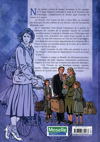 Ni les paroles pleines de bonnes intentions, ni les ouvrages de la ligne Maginot construits le long de la frontière avec l'Allemagne, n'empêcheront ce dernier pays d'envahir la France, ni la guerre. La Moselle, tout comme les Bas et Haut Rhin, va connaitre une des pages les plus sombres de son histoire, celle de l'occupation allemande nazie. Le 1er Septembre 1939 devant l'imminence de la guerre, les habitants des localités de la première tranche du territoire mosellan situées le long de la frontière avec l'Allemagne sont évacués. Cette évacuation sera suivie d'une seconde en mai 1940. Au total 300 communes sur 765, soit 302730 personnes, sont déplacées vers les deux départements de la Charente, de la Vienne et dans une moindre mesure de la Loire, de la Saône et Loire et du Pas-de-Calais. Après l'armistice de juin 1940, une question se pose à ces réfugiés : rester dans les départements d'accueil ou rentrer au pays ? Pendant ce temps, en Moselle, les Allemands procèdent à l'expulsion des juifs, tsiganes, communistes, syndicalistes, religieux et à tous ceux qui "n'entrent pas dans leur idéologie". C'est l'histoire de ces Mosellans évacués, expulsés, spoliés, réfugiés, sinistrés que Mosella vous propose de raconter dans ces pages.