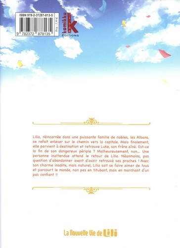 Une petite fille dandinante se débat dans un monde où elle s'est réincarnée ! Lilia, réincarnée dans une puissante famille de nobles, les Albans, se refait enlever sur le chemin vers la capitale. Mais finalement, elle parvient à destination et retrouve Luke, son frère aîné. Est-ce la fin de son dangereux périple ? Malheureusement, non... Une personne inattendue attend le retour de Lilia. Néanmoins, pas question d'abandonner avant d'avoir retrouvé ses proches ! Avec son charme insolite, mais naturel, Lilia sait se faire aimer de tous et parcourt le monde, non pas en titubant, mais en marchant d'un pas confiant !!