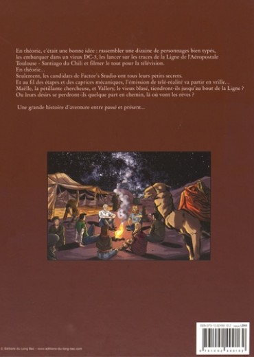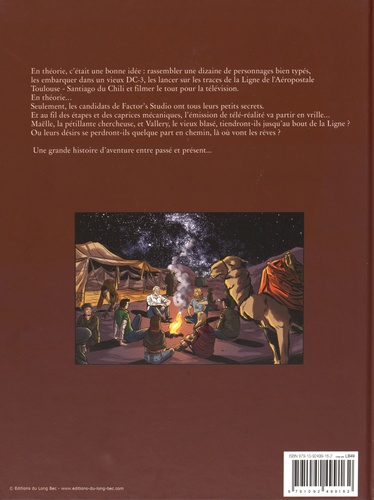 En théorie, c'était une bonne idée : rassembler une dizaine de personnages bien typés, les embarquer dans un vieux DC-3, les lancer sur les traces de la Ligne de l'Aéropostale Toulouse - Santiago du Chili et filmer le tout pour la télévision. En théorie... Seulement, les candidats de Factor's Studio ont tous leurs petits secrets. Et au fil des étapes et des caprices mécaniques, l'émission de télé-réalité va partir en vrille... Maëlle, la pétillante chercheuse, et Vallery, le vieux blasé, tiendront-ils jusqu'au bout de la Ligne ? Ou leurs désirs se perdront-ils quelque part en chemin, là où vont les rêves ? Une grande histoire d'aventure entre passé et présent...