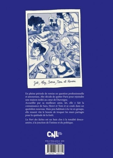 Apre`s un burnout et une se ? paration amoureuse, Aby de ? cide de rejoindre la colocation de sa meilleure amie Jet, en Auvergne. Mais peu habituée à la vie en groupe, elle ressent vite le besoin de troquer les murs partagés pour la quiétude de la forêt. La Part des Lâches est un huis-clos à la tonalité douce-amère, à la jonction de l'intime et du politique.
