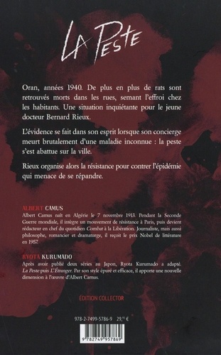 Le chef-d'oeuvre d'Albert Camus adapté pour la première fois en manga par Ryota Kurumado. EDITION COLLECTOR Oran, années 1940. De plus en plus de rats sont retrouvés morts dans les rues, semant l'effroi chez les habitants. Une situation inquiétante pour le jeune docteur Bernard Rieux. L'évidence se fait dans son esprit lorsque son concierge meurt brutalement d'une maladie inconnue : la peste s'est abattue sur la ville. Rieux organise alors la résistance pour contrer l'épidémie qui menace de se répandre. Librement adapté du roman éponyme d'Albert Camus, "La Peste" est également la nouvelle série-événement de France Télévisions avec Frédéric Pierrot, Hugo Becker, Sofia Essaïdi ou encore Judith Chemla.