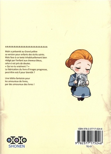 Main a présenté au Grand prêtre sa version pour enfants des écrits saints. Mais face à ce texte inhabituellement bien rédigé par l'enfant aux cheveux bleus, celui-ci est pris de doutes. " Qui es-tu vraiment ? ". La fabrication du livre d'images progresse, peut-être est-il pour bientôt ? Une biblio-fantaisie pour les amoureux de livres, par des amoureux des livres !