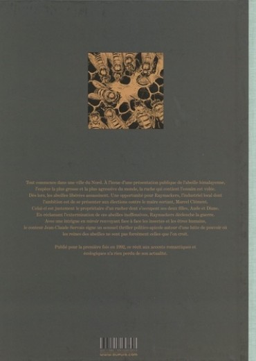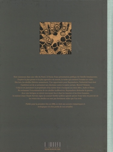 Tout commence dans une ville du Nord. A l'issue d'une présentation publique de l'abeille himalayenne, l'espèce la plus grosse et la plus agressive du monde, la ruche qui contient l'essaim est volée. Dès lors, les abeilles libérées assassinent. Une opportunité pour Raymackers, l'industriel local dont l'ambition est de se présenter aux élections contre le maire sortant, Marcel Clément. Celui-ci est justement le propriétaire d'un rucher dont s'occupent ses deux filles, Aude et Diane. En réclamant l'extermination de ces abeilles inoffensives, Raymackers déclenche la guerre. Avec une intrigue en miroir renvoyant face à face les insectes et les êtres humains, le conteur Jean-Claude Servais signe un sensuel thriller politico-apicole autour d'une lutte de pouvoir où les reines des abeilles ne sont pas forcément celles que l'on croit.
