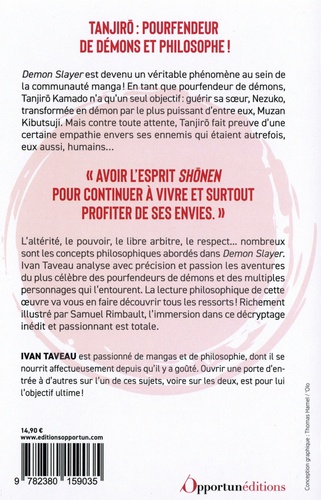 Tanjiro : pourfendeur de démons et philosophe ! Demon Slayer est devenu un véritable phénomène au sein de la communauté manga ! En tant que pourfendeur de démons, Tanjiro Kamado n'a qu'un seul objectif : guérir sa soeur, Nezuko, transformée en démon par le plus puissant d'entre eux, Muzan Kibutsuji. Mais contre toute attente, Tanjiro fait preuve d'une "Avoir l'esprit shonen pour continuer à vivre et surtout profiter de ses envies". L'altérité, le pouvoir, le libre arbitre, le respect... nombreux sont les concepts philosophiques abordés dans Demon Slayer. Ivan Taveau analyse avec précision et passion les aventures du plus célèbre des pourfendeurs de démons et des multiples personnages qui l'entourent. La lecture philosophique de cette oeuvre va vous en faire découvrir tous les ressorts ! Richement illustré par Samuel Rimbault, l'immersion dans ce décryptage inédit et passionnant est totale. IVAN TAVEAU est passionné de mangas et de philosophie, dont il se nourrit affectueusement depuis qu'il y a goûté. Ouvrir une porte d'entrée à d'autres sur l'un de ces sujets, voire sur les deux, est pour lui l'objectif ultime !