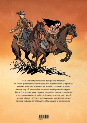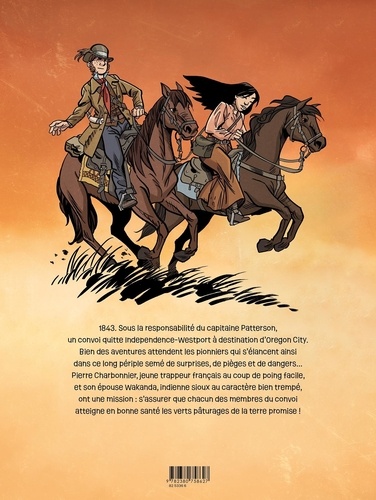 1843. Sous la responsabilité du capitaine Patterson, un convoi quitte Independence-Westport à destination d'Oregon City. Bien des aventures attendent les pionniers qui s'élancent ainsi dans ce long périple semé de surprises, de pièges et de dangers... Pierre Charbonnier, jeune trappeur français au coup de poing facile, et son épouse Wakanda, indienne sioux au caractère bien trempé, ont une mission : s'assurer que chacun des membres du convoi atteigne en bonne santé les verts pâturages de la terre promise !