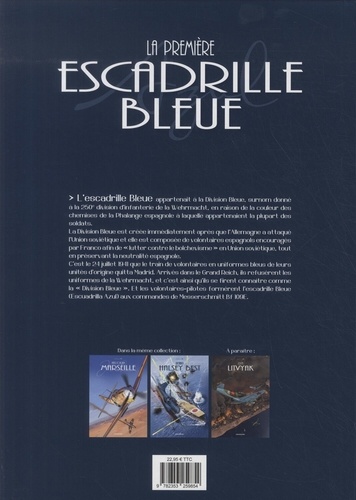 L'escadrille Bleue appartenait à la Division Bleue, surnom donné à la 250e division d'infanterie de la Wehrmacht, en raison de la couleur des chemises de la Phalange espagnole à laquelle appartenaient la plupart des soldats. La Division Bleue est créée immédiatement après que l'Allemagne a attaqué l'Union soviétique et elle est composée de volontaires espagnols encouragés par Franco afin de "lutter contre le bolchevisme" en Union soviétique, tout en préservant la neutralité espagnole. C'est le 24 juillet 1941 que le train de volontaires en uniformes bleus de leurs unités d'origine quitta Madrid. Arrivés dans le Grand Reich, ils refusèrent les uniformes de la Wehrmacht, et c'est ainsi qu'ils se firent connaître comme la "Division Bleue". Et les volontaires-pilotes formèrent l'escadrille Bleue (Escuadrilla Azul) aux commandes de Messerschmitt Bf 109E.