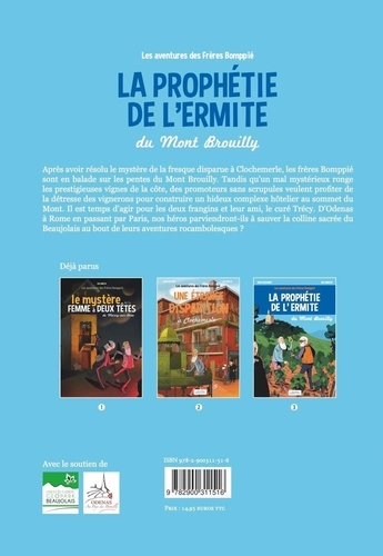 Après avoir résolu le mystère de la fresque disparue à Clochemerle, les frères Bomppié sont en balade sur les pentes du Mont Brouilly. Tandis qu'un mal mystérieux ronge les prestigieuses vignes de la côte, des promoteurs sans scrupules veulent profiter de la détresse des vignerons pour construire un hideux complexe hôtelier au sommet du Mont. Il est temps d'agir pour les deux frangins et leur ami, le curé Trécy. D'Odenas à Rome en passant par Paris, nos héros parviendront-ils à sauver la colline sacrée du Beaujolais au bout de leurs aventures rocambolesques ?